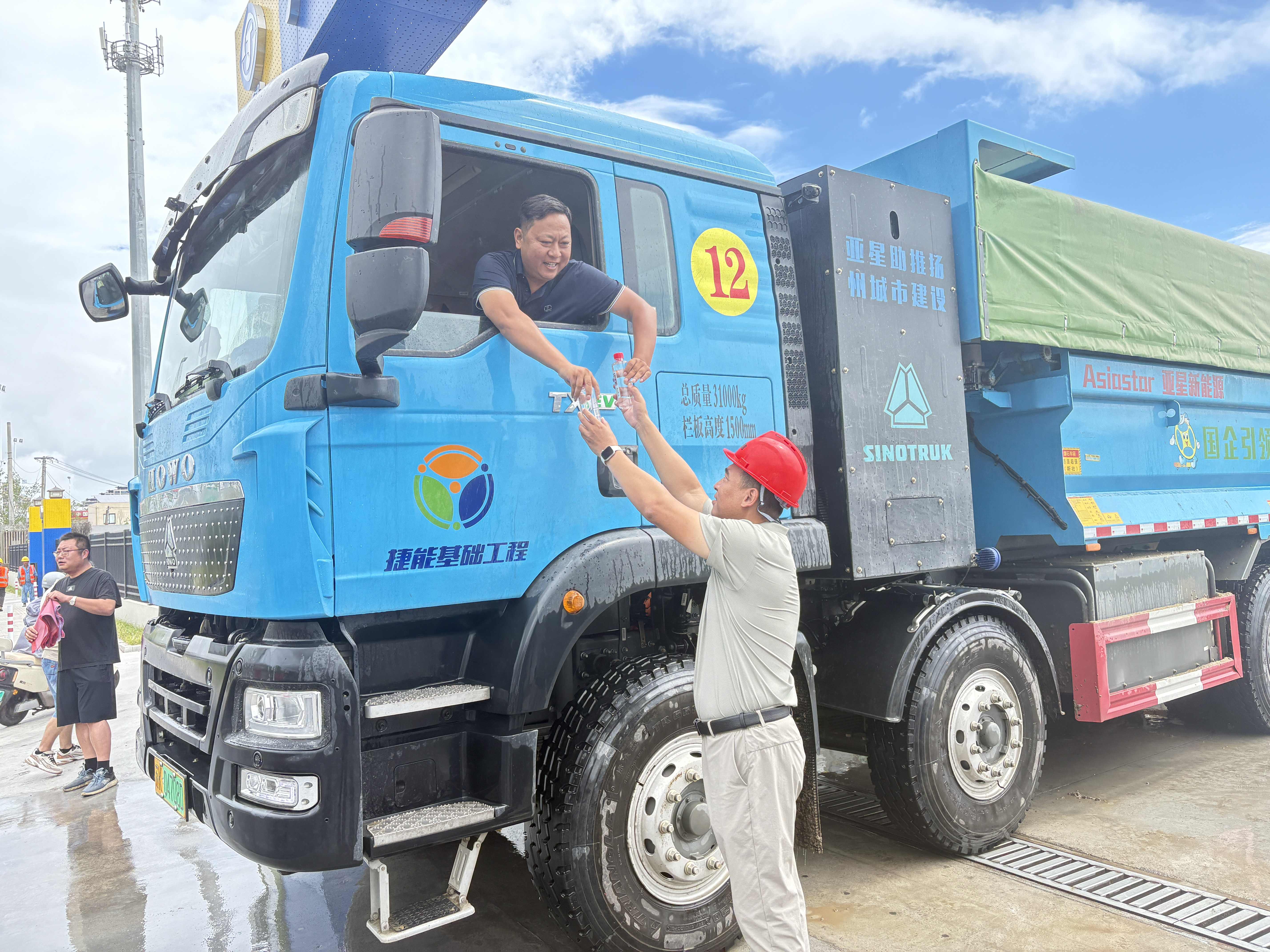 連日來(lái),揚(yáng)州持續(xù)高溫。面對(duì)酷暑考驗(yàn),揚(yáng)州捷能基礎(chǔ)工程有限公司的渣土車(chē)運(yùn)輸駕駛員們?nèi)詧?jiān)守施工一線(xiàn),全力保障生產(chǎn)。為切實(shí)維護(hù)一線(xiàn)駕駛員的身心健康與作業(yè)安全,公司聯(lián)合新能源車(chē)輛廠(chǎng)家組成慰問(wèn)小組,開(kāi)展了“送清涼”活動(dòng),為在高溫下辛勤作業(yè)的駕駛員們送去關(guān)懷與清涼。